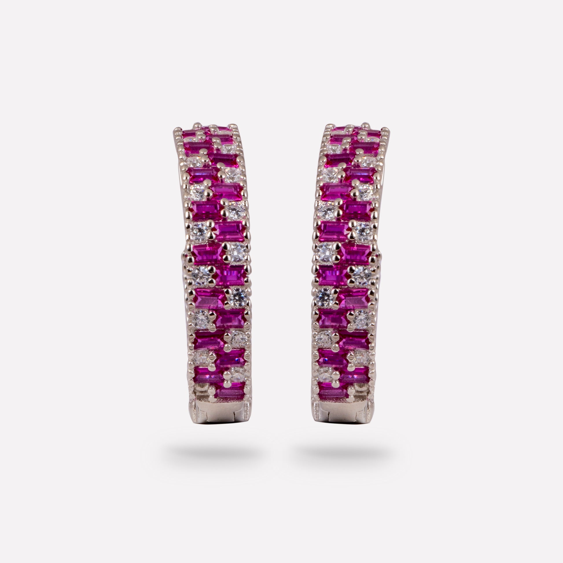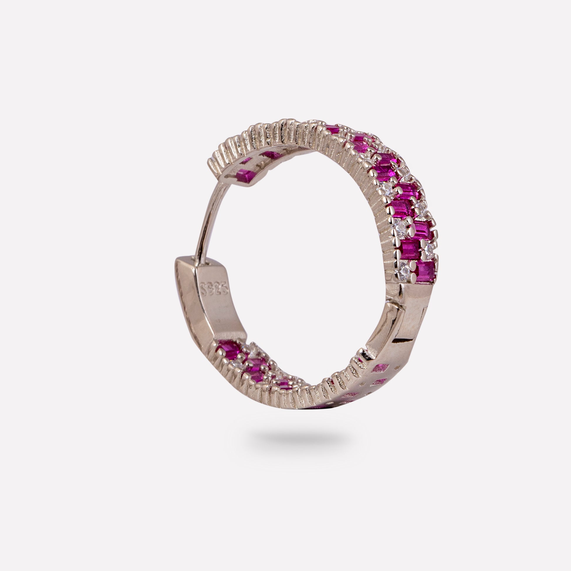 These stunning Ruby and Diamond Hoops Earrings are crafted from 925 sterling silver. The vibrant rubies and sparkling diamonds make them a perfect addition to any jewelry collection. Made with high-quality materials, these earrings are sure to add a touch of elegance to any outfit.