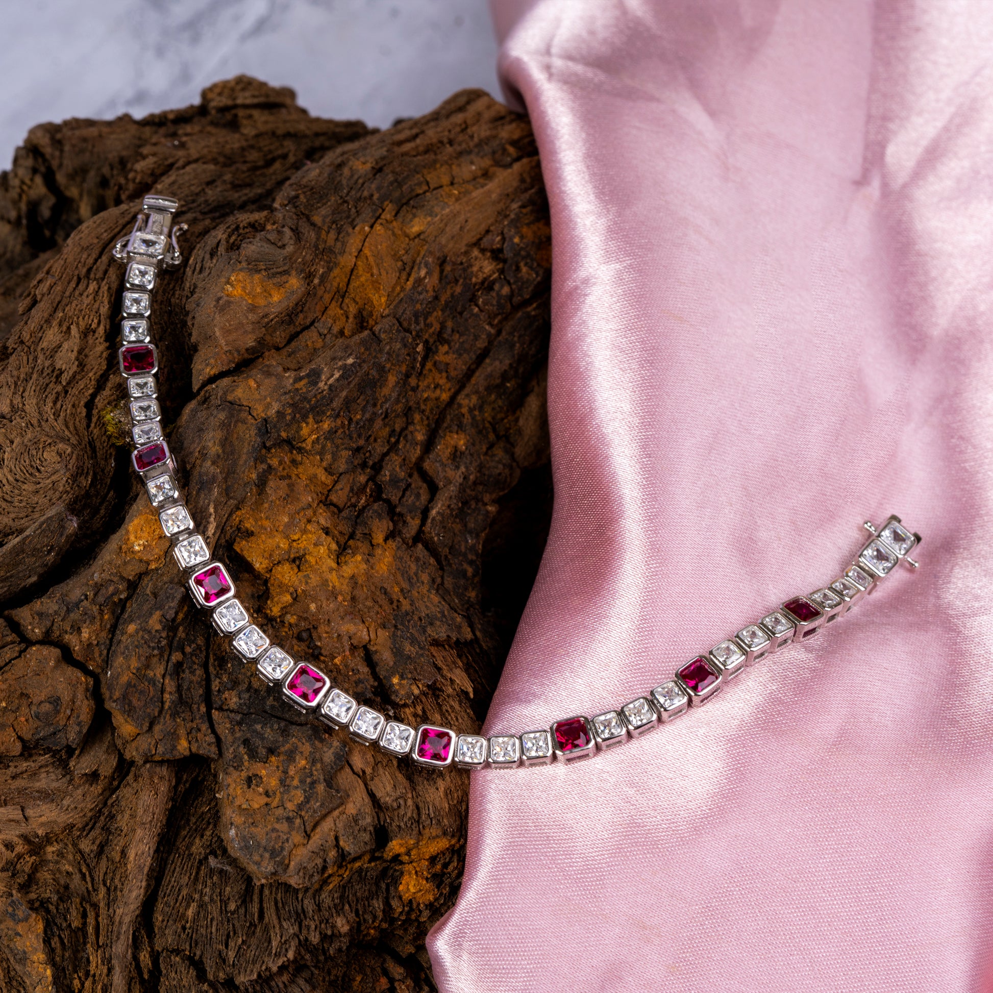 This premium silver bracelet features a beautiful CZ pink stone, making it a stunning accessory for any occasion. Crafted with 925 sterling silver, it offers both high quality and style. Elevate your look with this elegant and versatile bracelet.