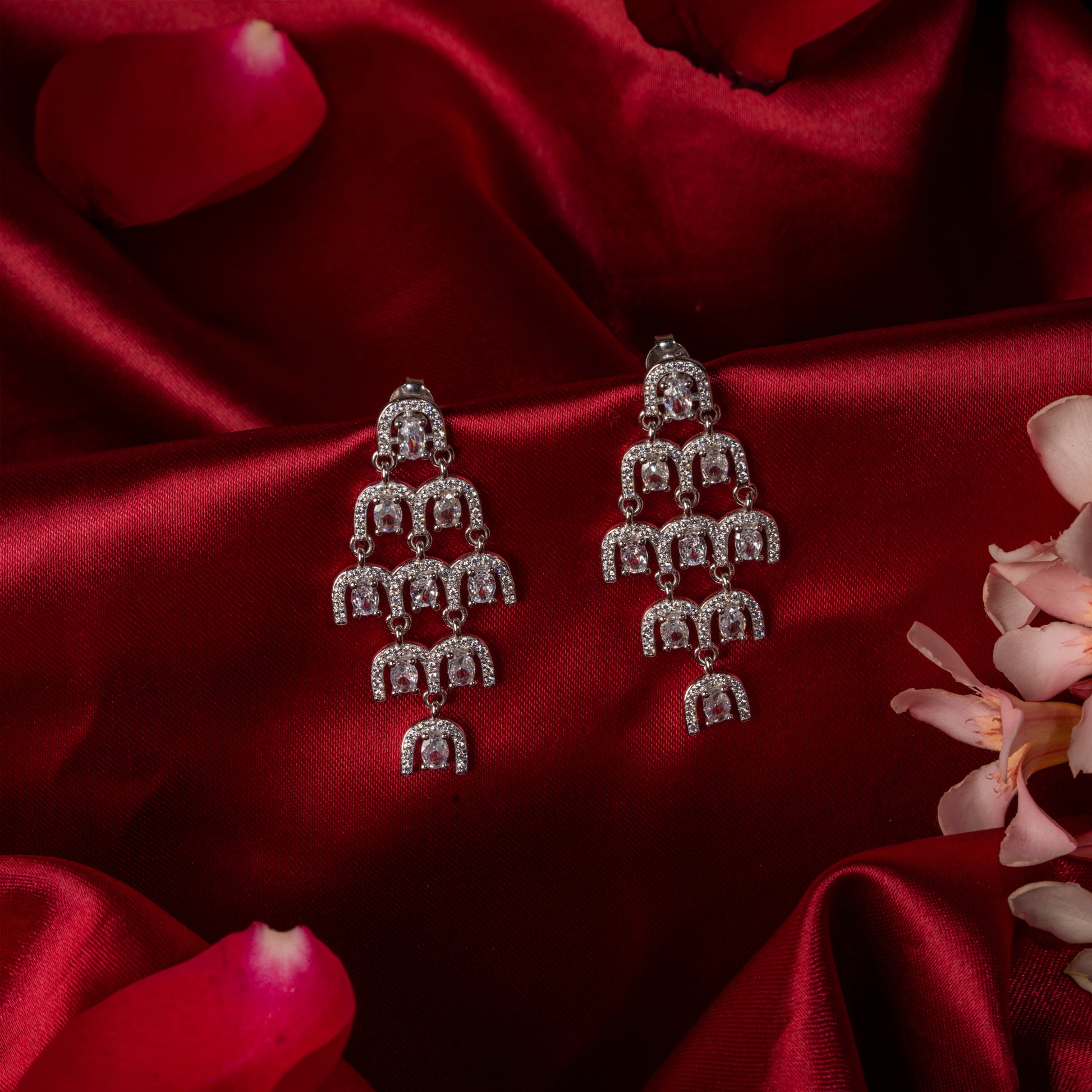 Crafted with 925 sterling silver, these Sparkling Arch Drop Earrings radiate elegance and sophistication. The sparkling arch design adds a touch of glamour to any outfit. High-quality materials ensure long-lasting wear. Elevate your style with these stunning earrings.
