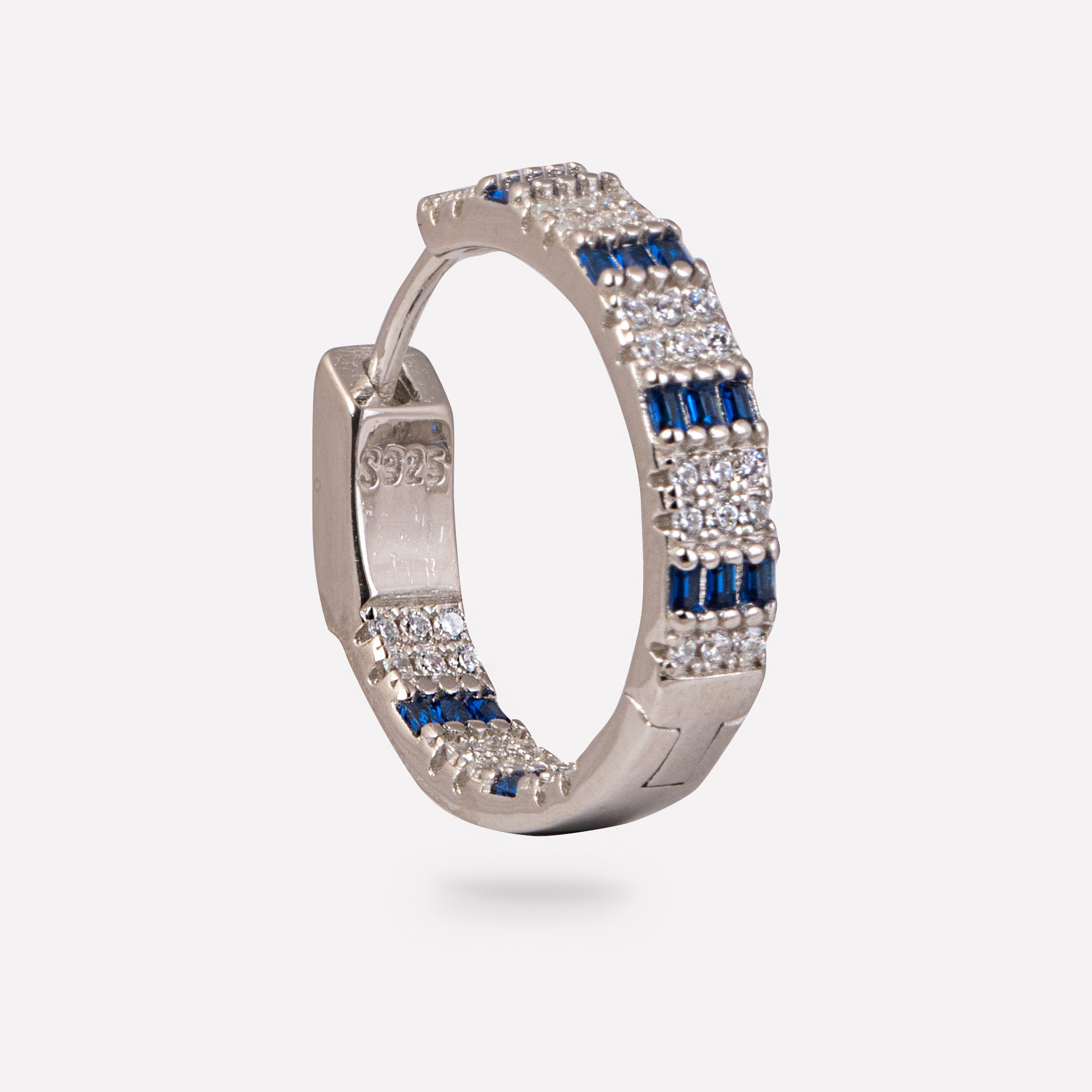 Expertly crafted using high-quality 925 sterling silver, these Blue Gem Hoop Earrings are a must-have for any jewelry collection. The stunning blue cz stones add a touch of elegance and luxury to any outfit, making these earrings the perfect accessory for any occasion. Invest in timeless beauty with these Blue Gem Hoop Earrings.
