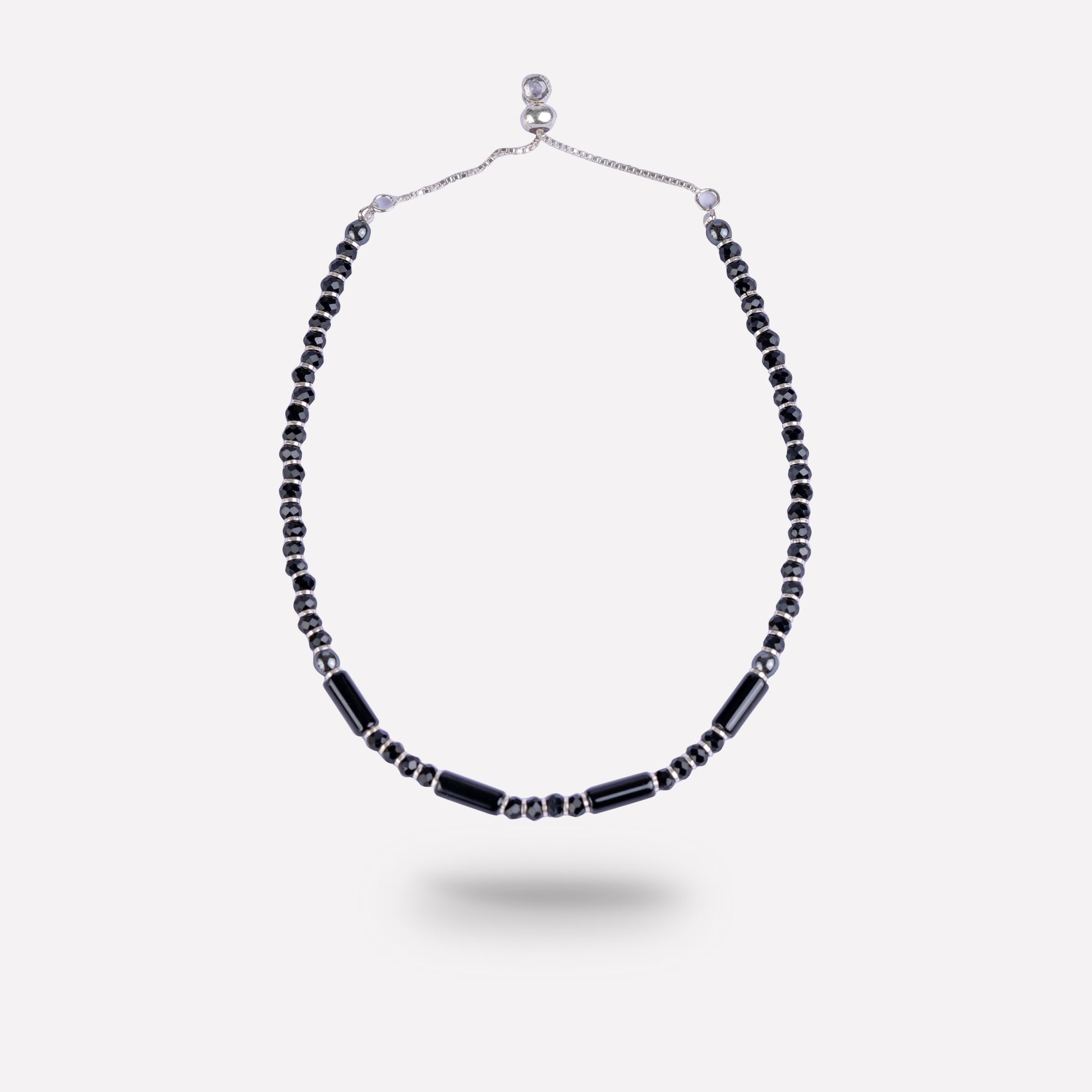 Elevate your style with our Midnight Muse Black Bead Bracelet. Made with 925 sterling silver, this adjustable bracelet adds a touch of elegance to any outfit. The sleek black beads create a versatile and timeless look, perfect for any occasion. Get ready to make a statement with this must-have accessory.