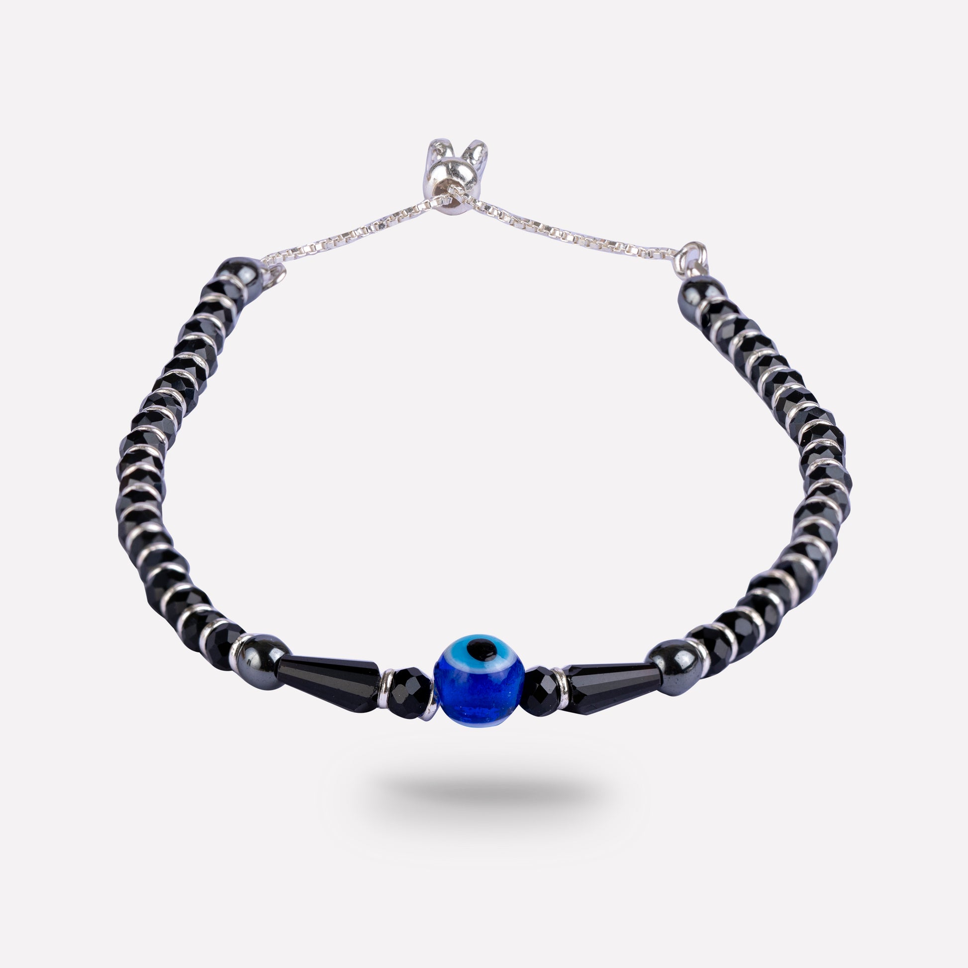 This Evil Eye Black Bead Bracelet is crafted from high-quality 925 sterling silver and features an adjustable design. The black beads are believed to protect against the "evil eye", making this bracelet both stylish and symbolic. A must-have accessory for anyone looking to add a touch of cultural and spiritual significance to their wardrobe.