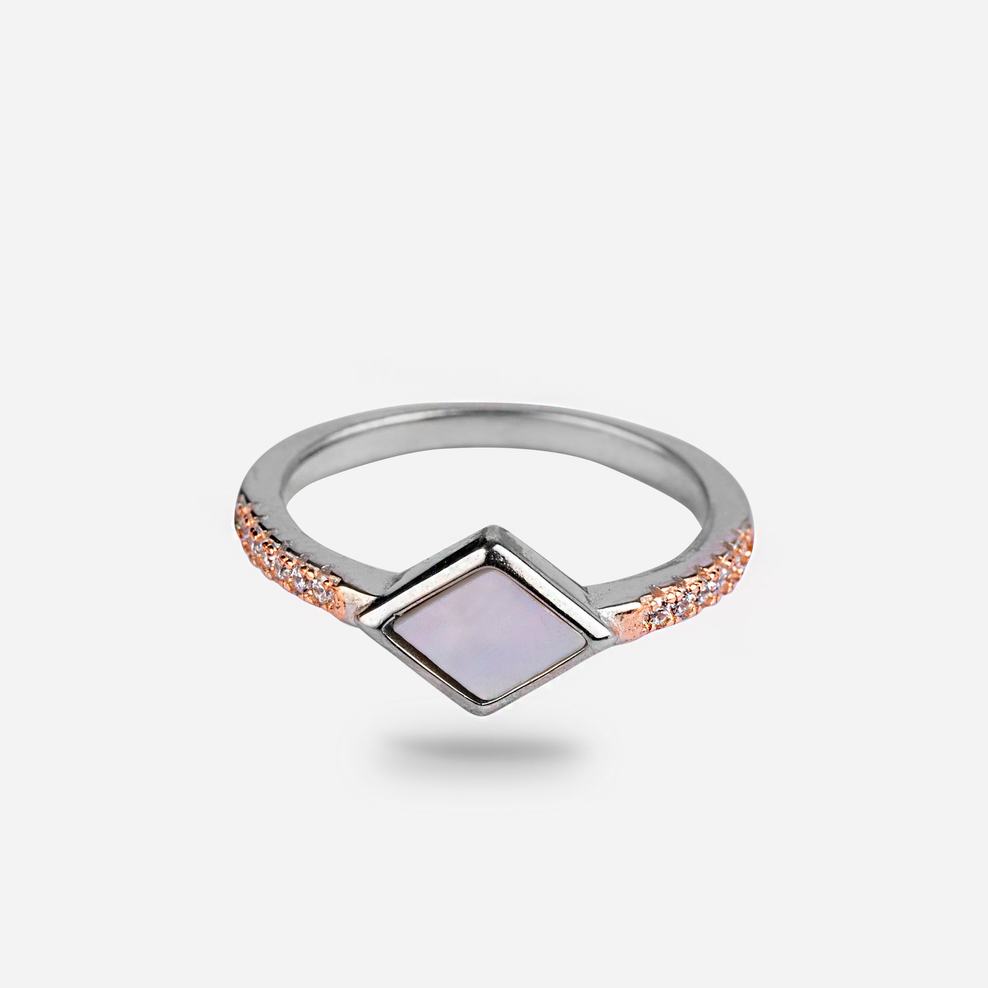 Introducing MOP's Radiant Charm Sterling Silver Ring, featuring a mesmerizing Mother of Pearl charm set in a high-quality sterling silver band. This elegant ring exudes sophistication and adds a touch of luxury to any look. Experience timeless beauty with MOP.