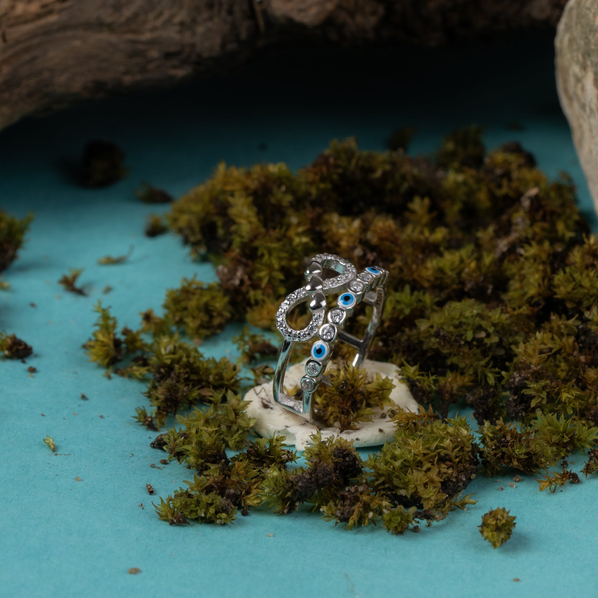The Serene Enigma Sterling Silver Infinity CZ Ring is a stunning piece of jewelry that combines the timeless elegance of sterling silver with the sparkling beauty of CZ stones. With its infinity design, this ring symbolizes eternal love and promises to be a cherished addition to any jewelry collection.