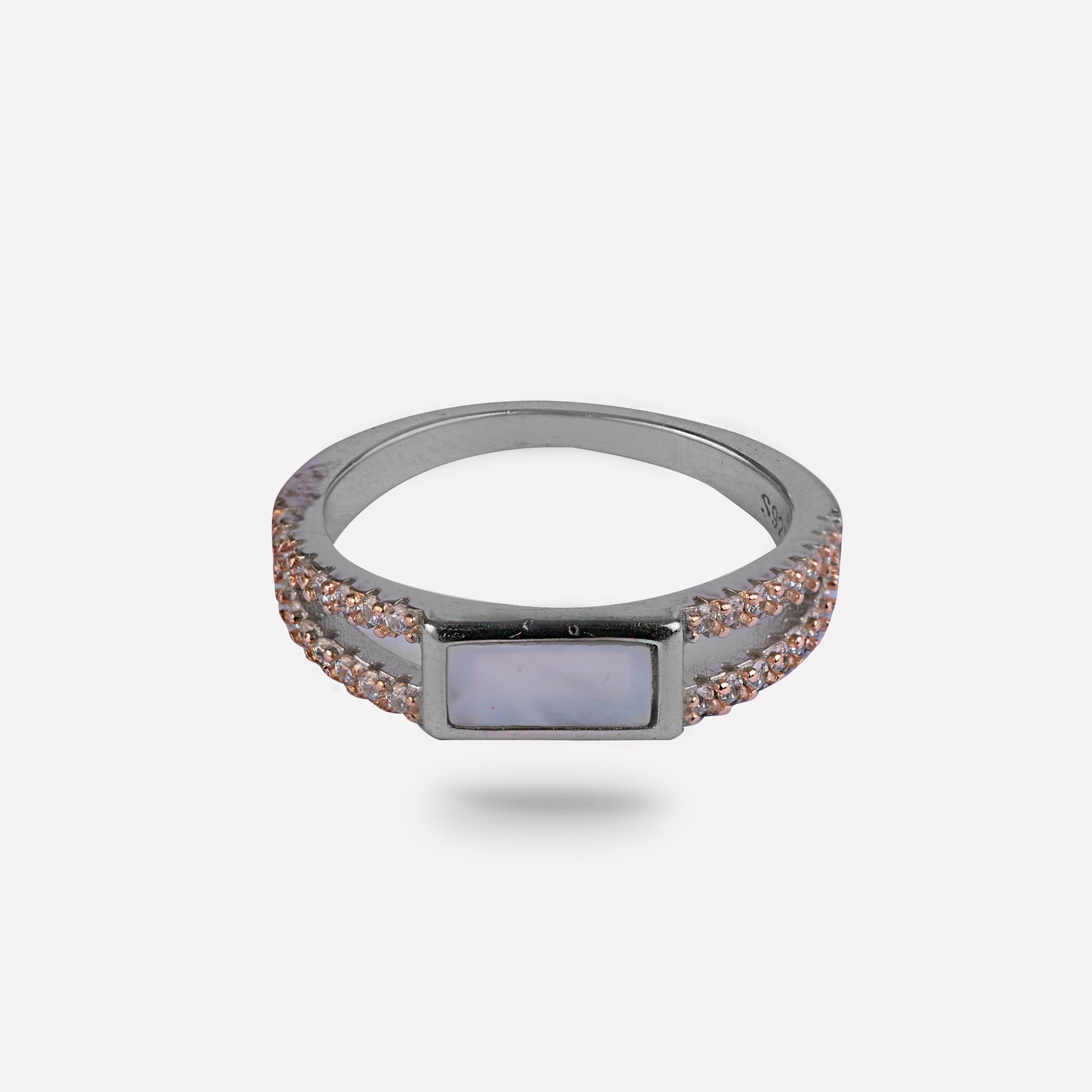 Expertly crafted in Sterling Silver, this Luminous Spectrum Ring features a mesmerizing iridescent stone and sparkling CZ accents. With its luminous shine and stunning design, this ring will add a touch of elegance and sophistication to any outfit. Elevate your style with this must-have piece.