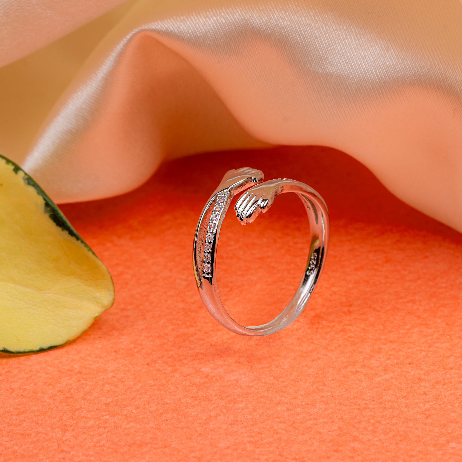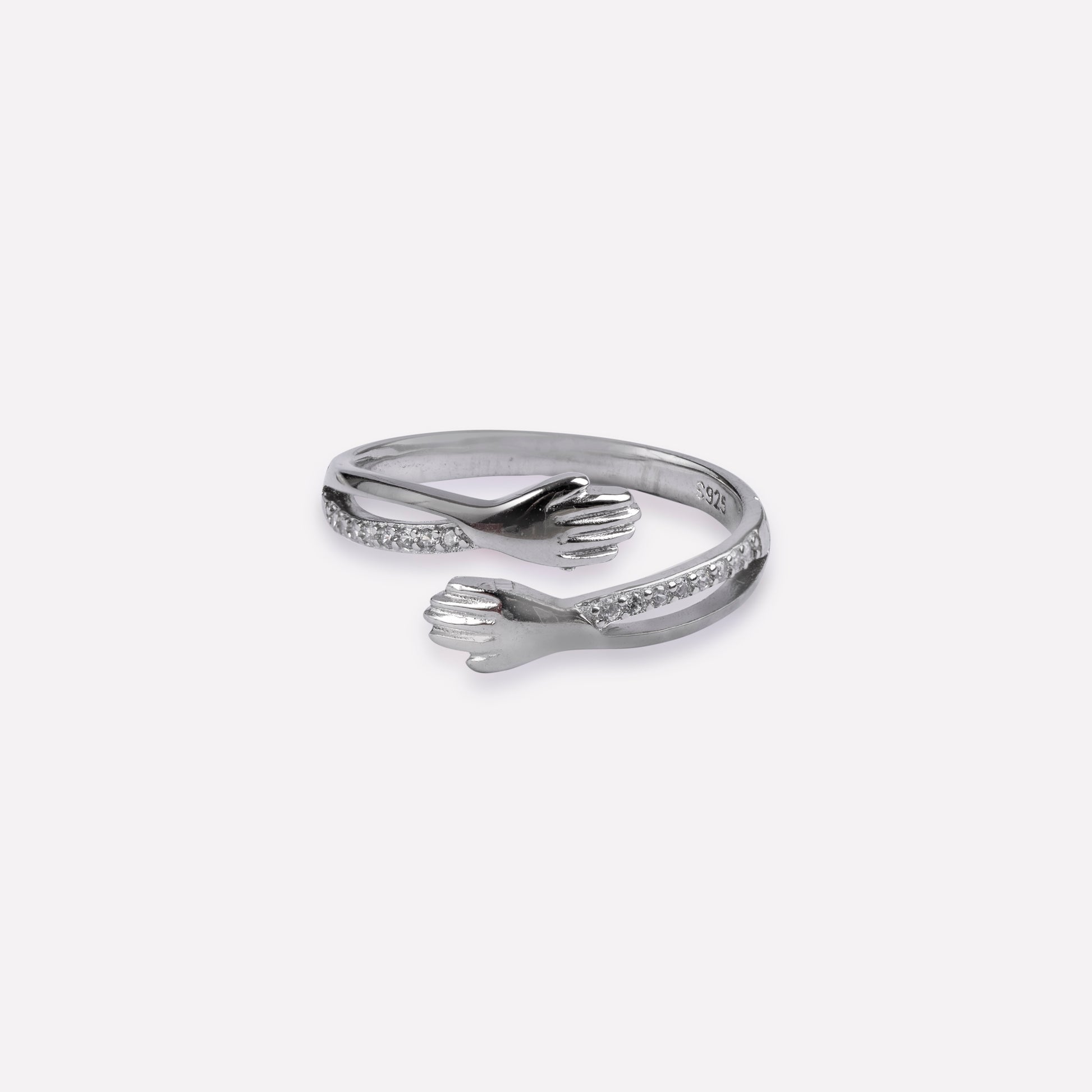 Harmony Hands Sterling Silver Ring with CZ Accents
