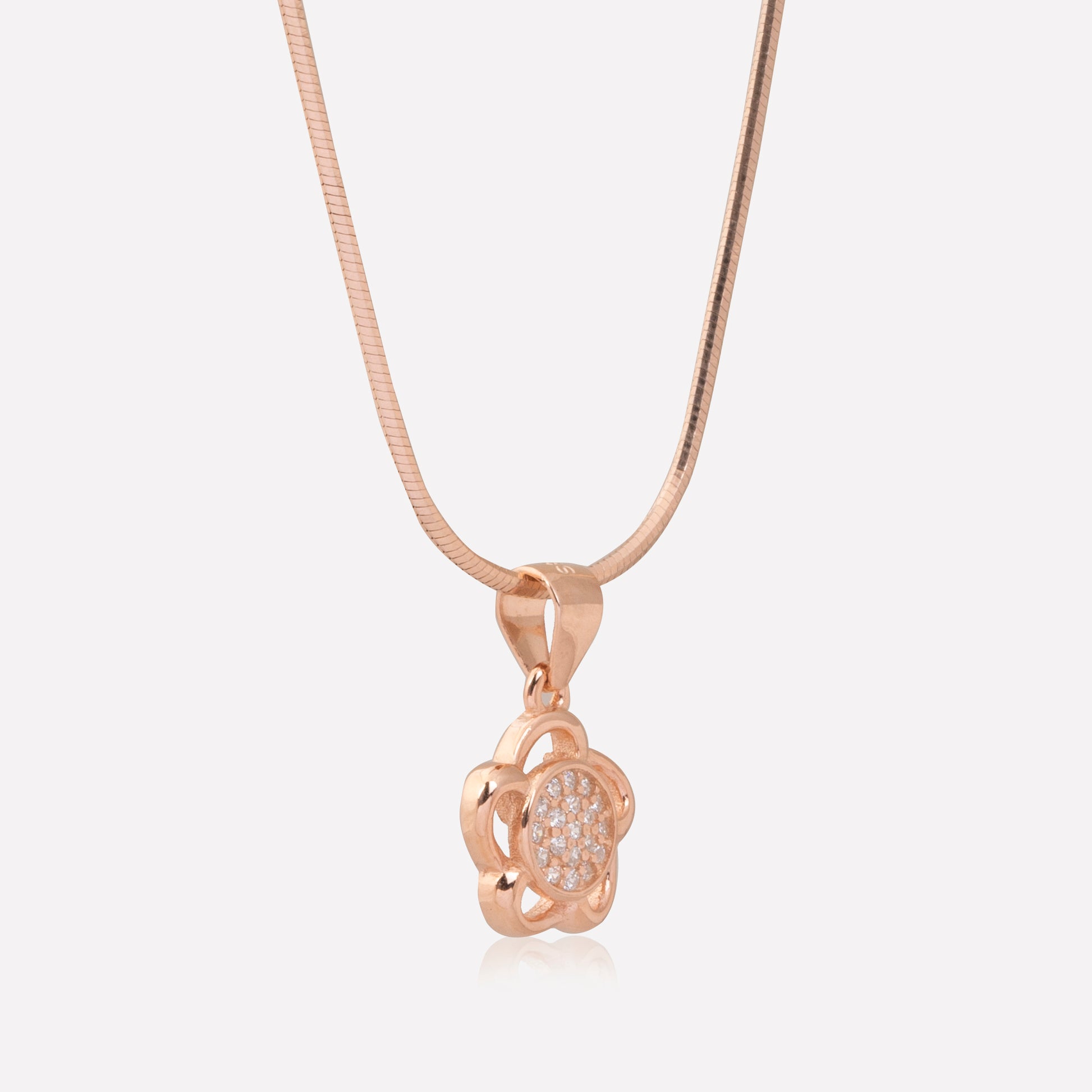 Crafted with delicate details, the Floral Fantasy Pendant is a beautiful piece of jewelry made of 925 sterling silver and rose gold. Its elegant floral design showcases expert craftsmanship and adds a touch of sophistication to any outfit. Elevate your style with this stunning pendant.