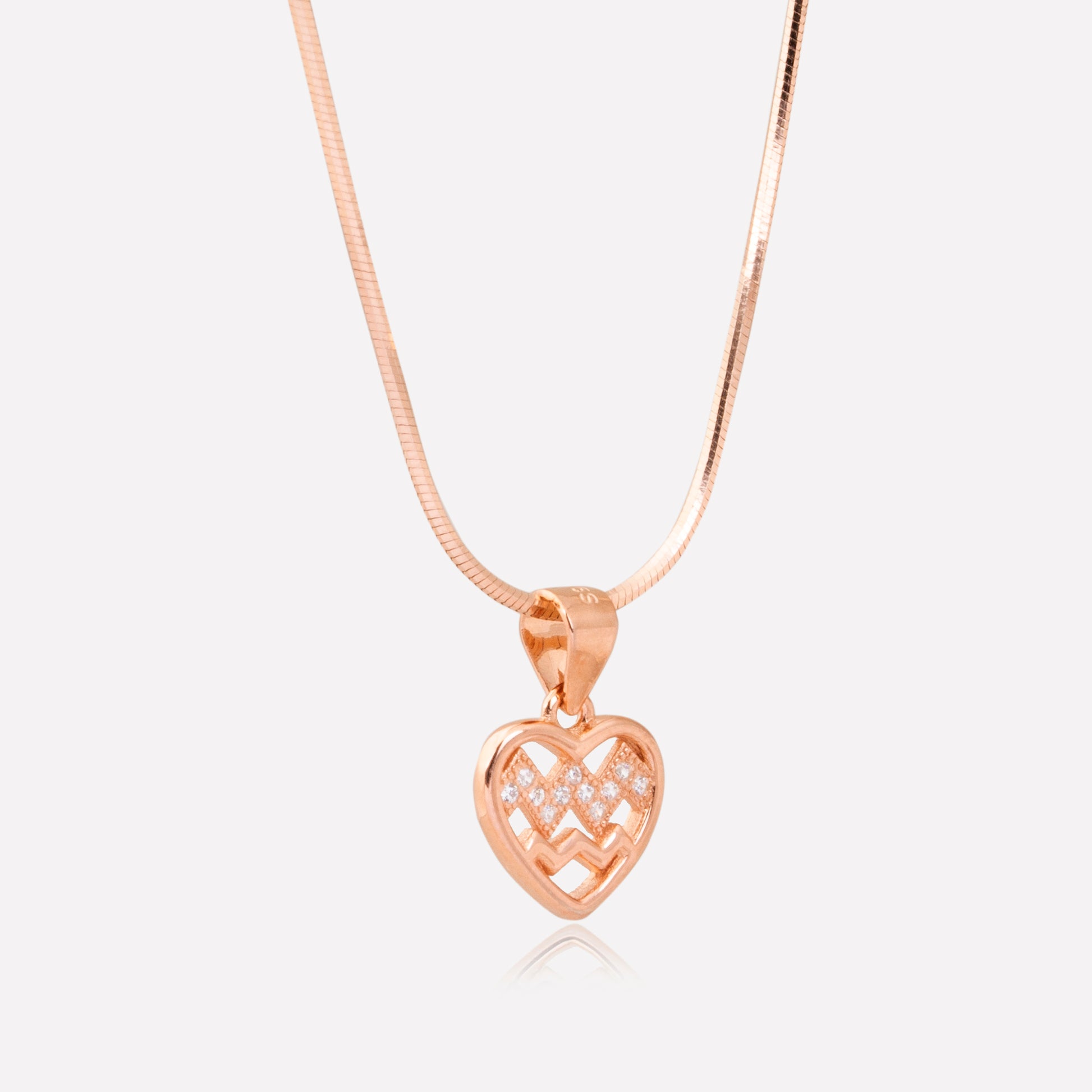 Expertly crafted in 925 sterling silver with a rose gold finish, the Waves of Love Pendant exudes elegance and romance. Featuring delicate waves, this pendant is a perfect symbol of enduring love. Made with high-quality materials, it is a timeless piece that will add a touch of luxury to any outfit.