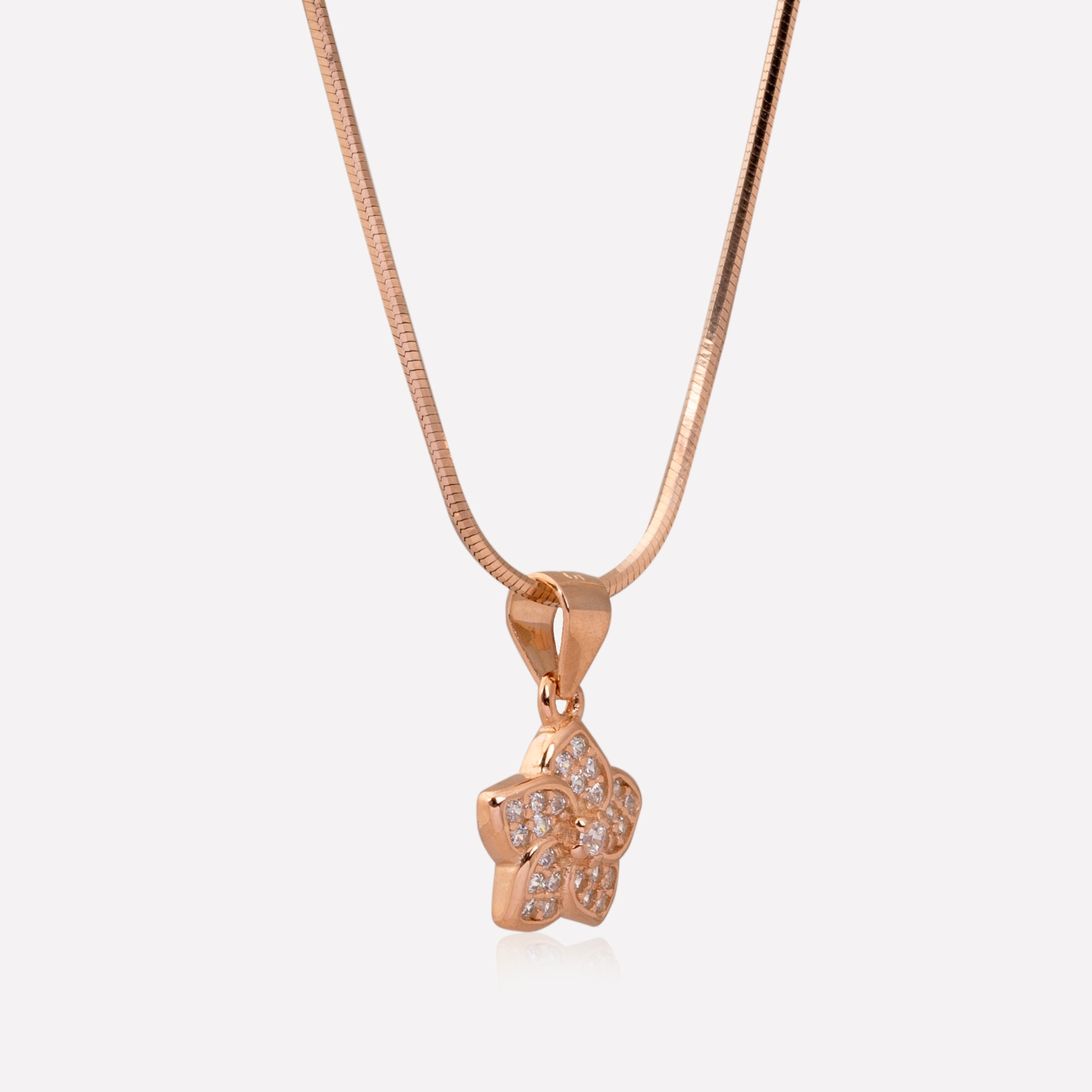 Elevate your style game with our Blossom & Shine Sterling Pendant. This stunning rose gold 925 silver pendant is adorned with sparkling cz stones, adding a touch of luxury to any outfit. Crafted with quality and precision, this pendant is a must-have for any fashion-forward individual.