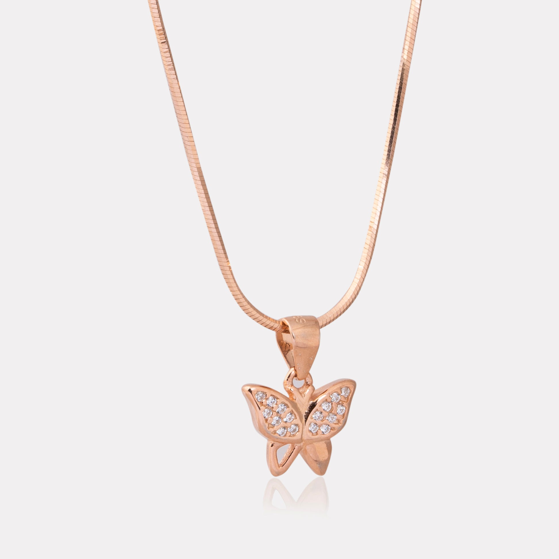 Illuminate your style with our Luminous Butterfly Charm Pendant. Crafted with rose gold and 925 sterling silver, this pendant will add a touch of elegance to any outfit. The luminous design will catch the eye and make a statement. Elevate your look and embrace the beauty of nature with this unique charm pendant.