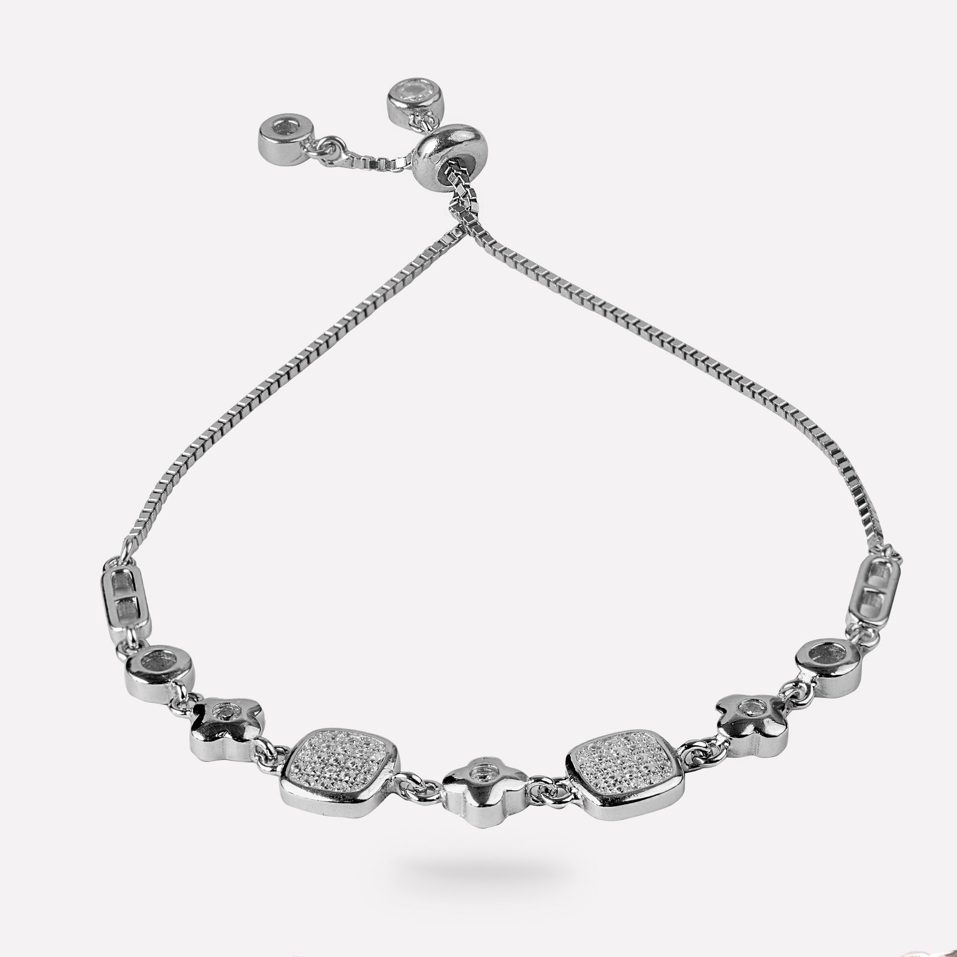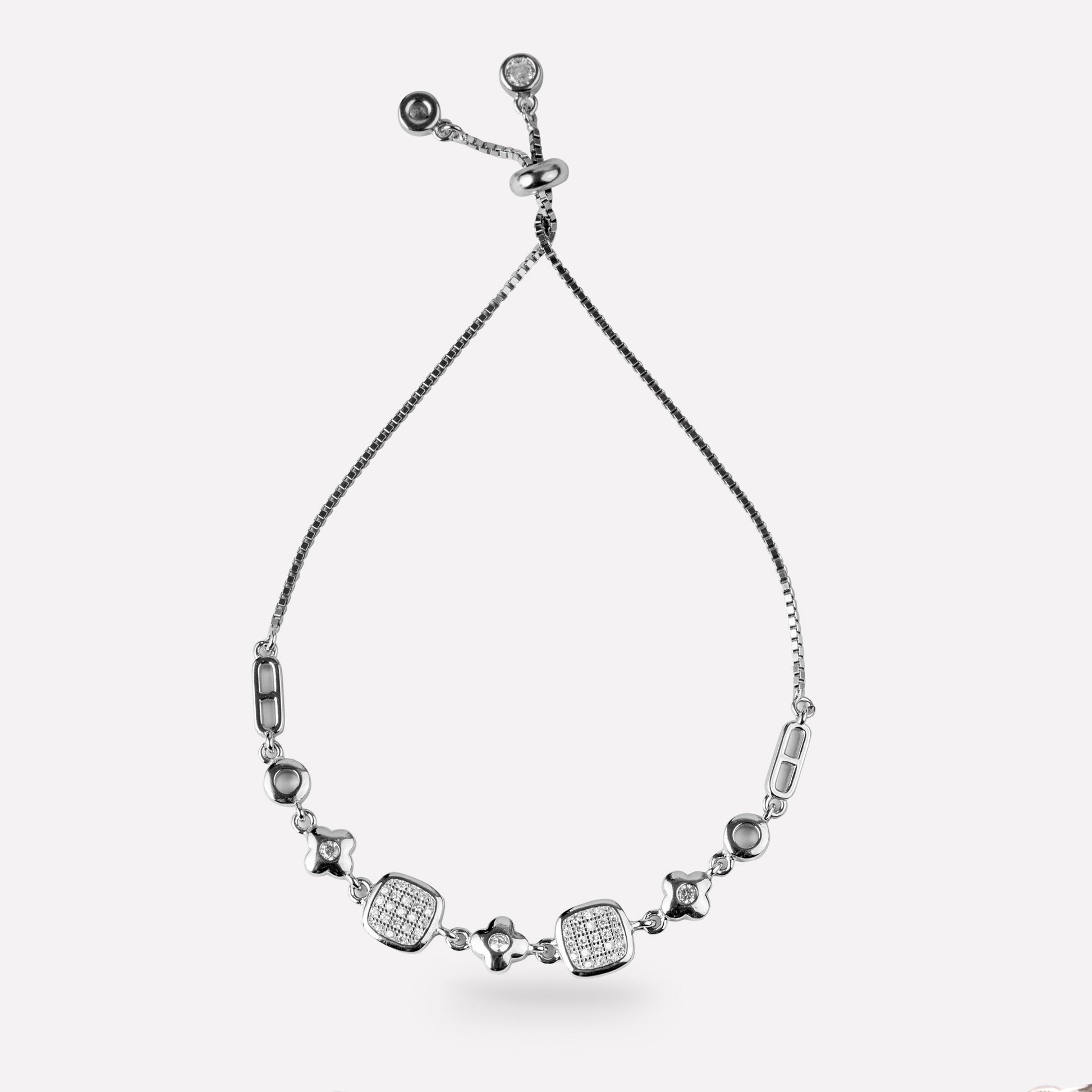 Crafted with 925 sterling silver, the Radiant Squares Adjustable Bracelet adds a touch of elegance to any outfit. The adjustable design allows for a comfortable and secure fit. With its sleek and modern design, this bracelet is a perfect addition to your jewelry collection.