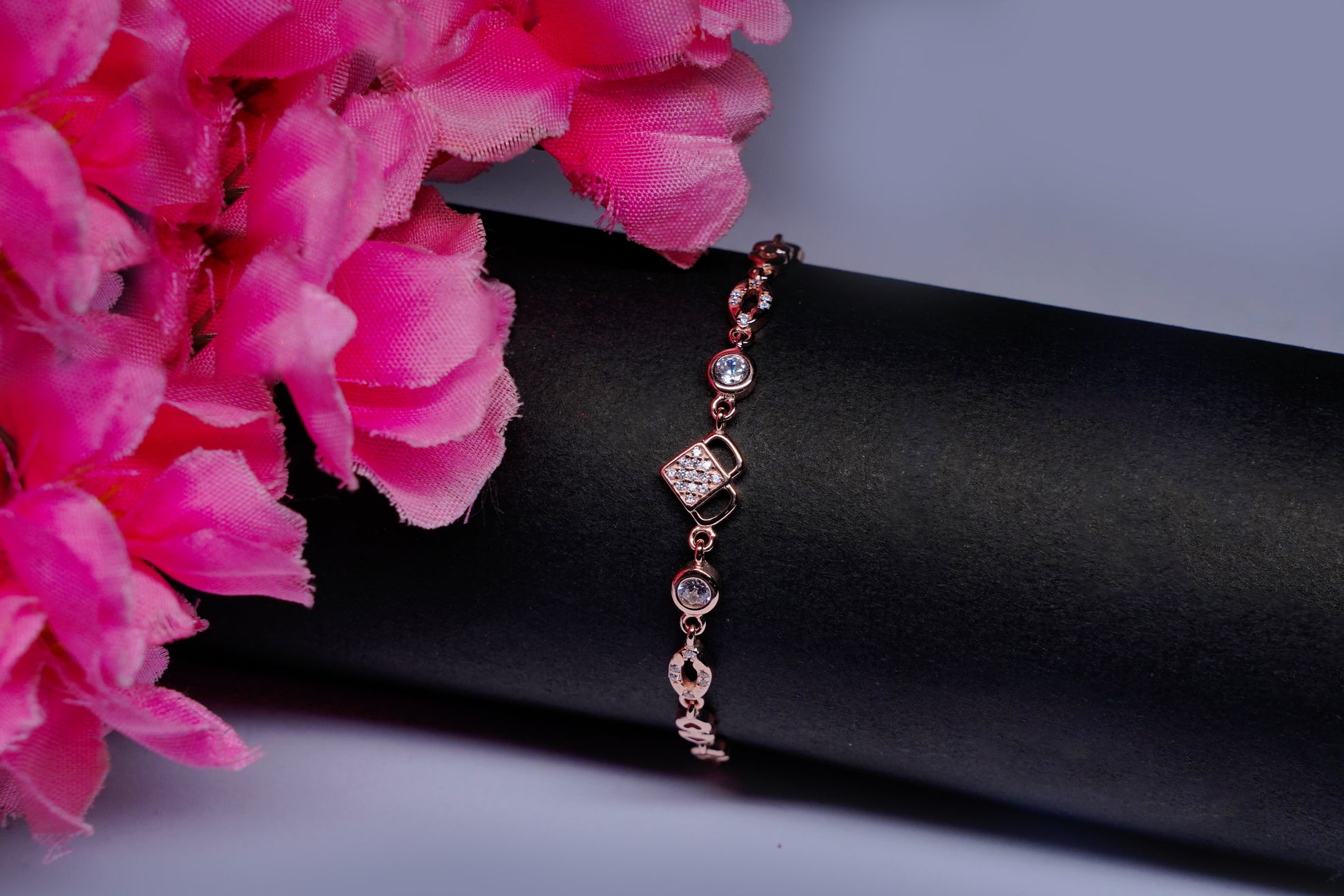 This elegant rose gold and silver bracelet features a unique design that adds a touch of sophistication to any outfit. Handcrafted with high-quality materials, this bracelet is a must-have accessory for any fashion-forward individual. Its stunning design makes it suitable for any occasion, making it a versatile and stylish addition to your jewelry collection.