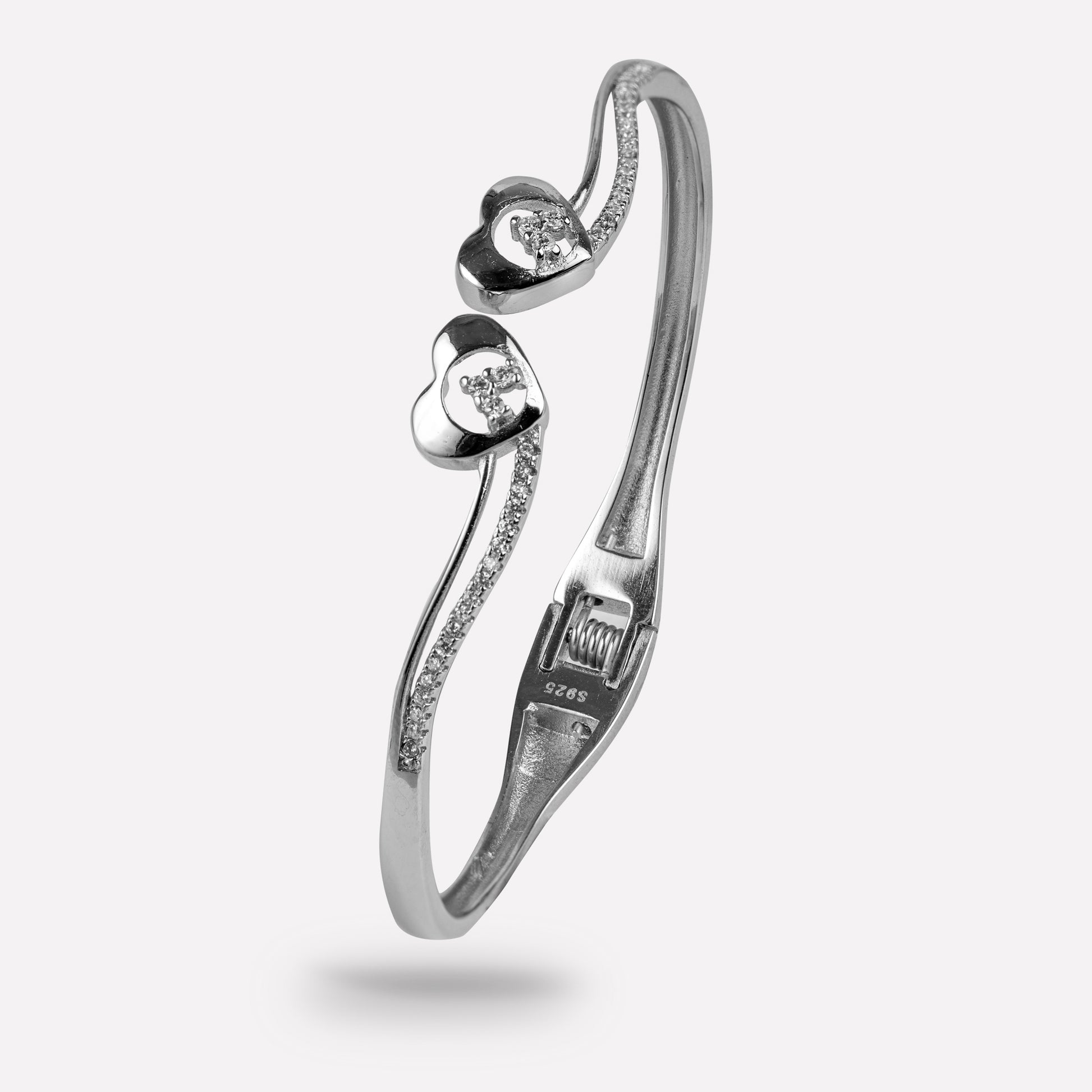 The Eternal Hearts Bracelet is expertly crafted from spring sterling silver, ensuring a timeless piece that will never go out of style. Its elegant design features delicate hearts that symbolize everlasting love and make it the perfect gift for your loved ones. Add a touch of sophistication to any outfit with this exquisite bracelet.