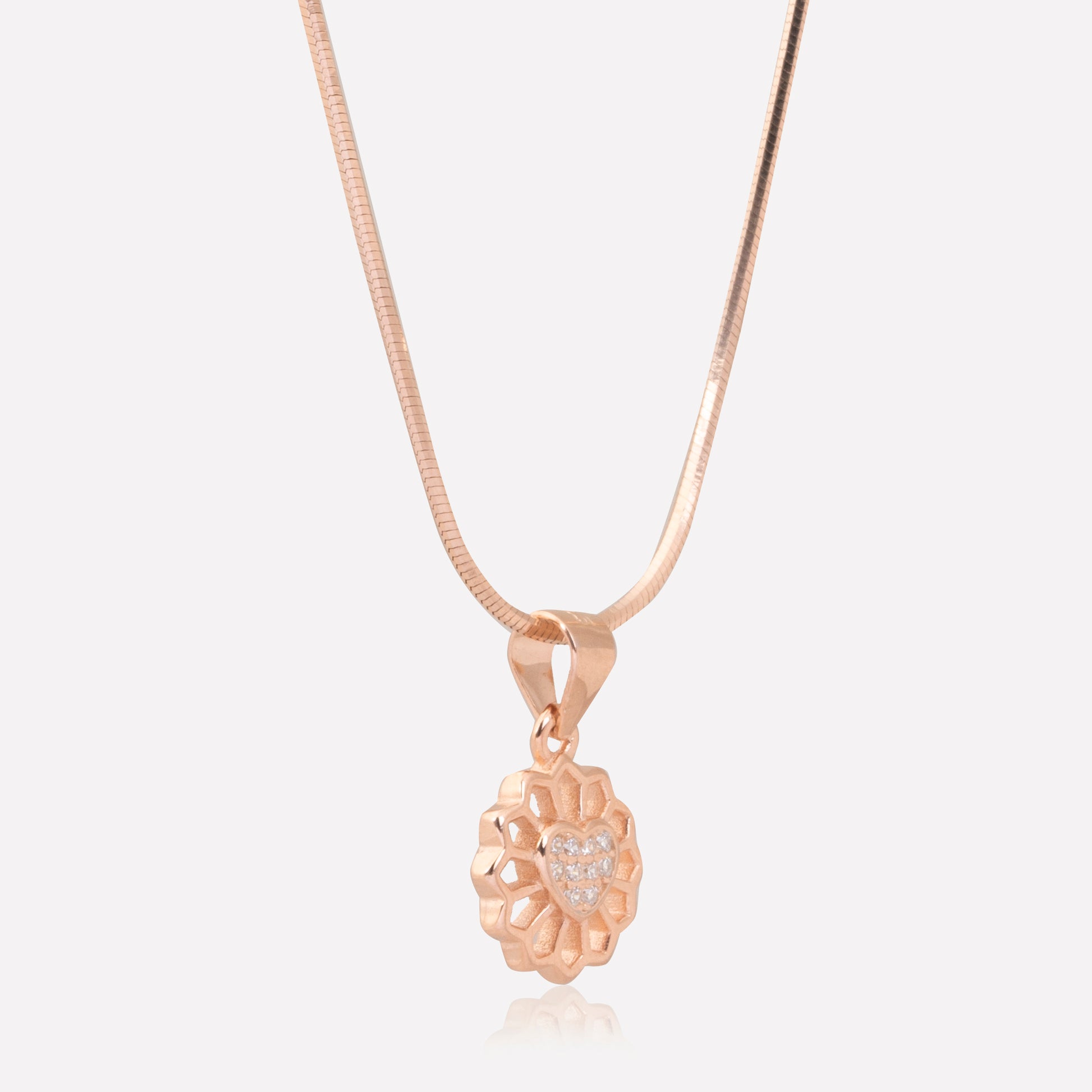 Expertly crafted with a rose gold 925 sterling silver setting, this Sparkling Gemstone Halo Pendant radiates elegance. The glittering gemstone halo adds a touch of glamour to any outfit, making it the perfect accessory for any occasion. Elevate your style with this stunning pendant.