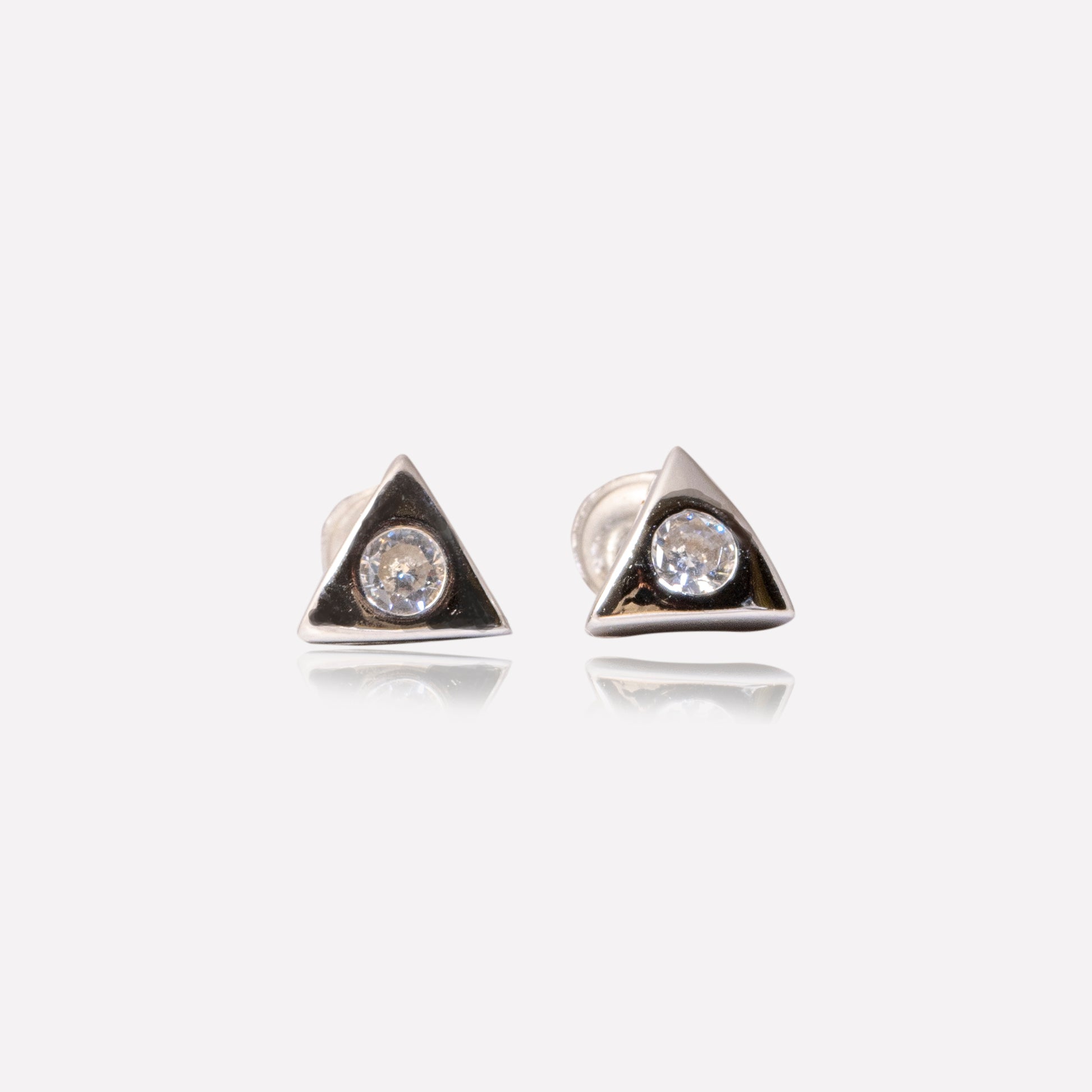 Elevate your style with our TriSparkle Gem Studs. Made with 925 sterling silver, these studs offer both elegance and durability. Enjoy a timeless, classic look that will elevate any outfit.